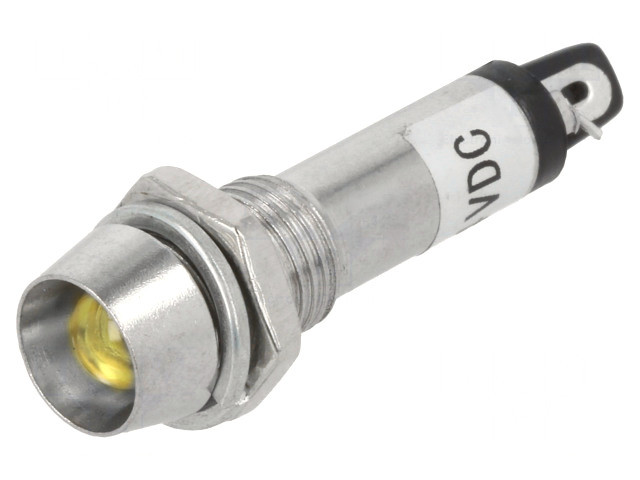 12 V-os XD8-1 8mm-es vízálló, Fém jelzőlámpa, Sárga