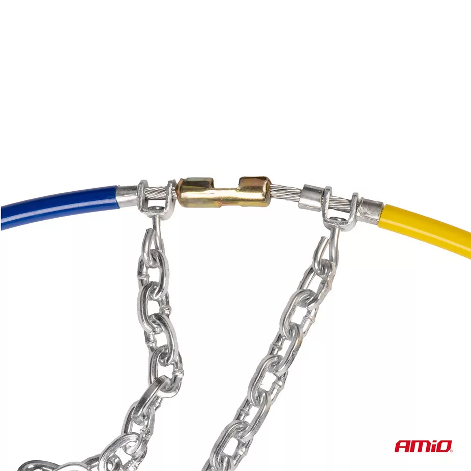 Kétlépcsős láncfeszítés – a beszerelés után azonnal és néhány méter meghajtás után meg kell húzni. Használható mind az első, mind a hátsó tengelyen, ABS-sel és ESP-vel felszerelt járművekben. A készlet két láncot tartalmaz mindkét hajtott kerékhez.