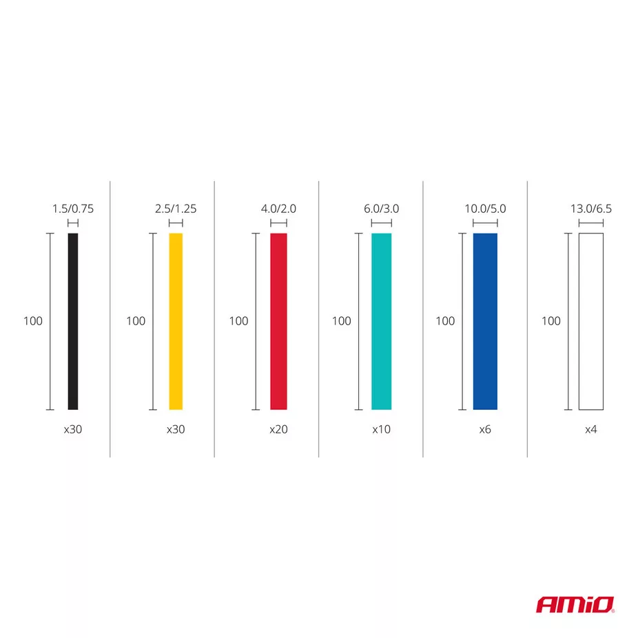 A készlet a következő 100 mm-es zsugorcsöveket tartalmazza: