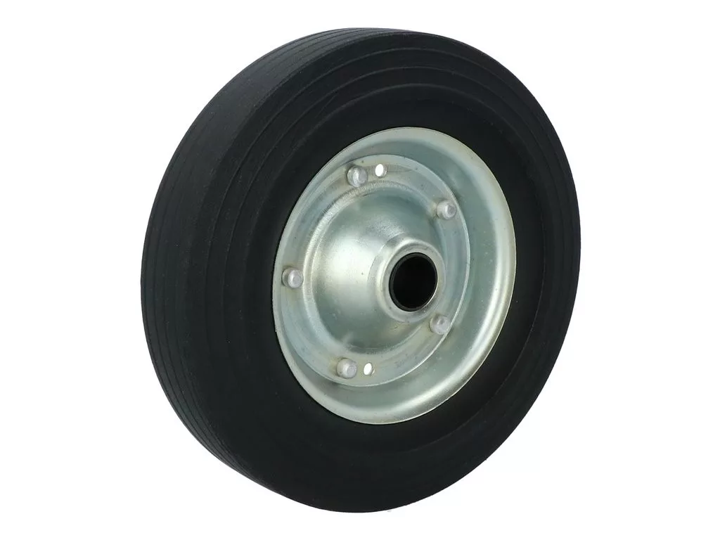 Carpoint pótkerék. Fém felnivel és tömör gumi kerékkel. Kerékméret: 200x50 mm, maximális teherbírás: 150 kg. Könnyen cserélhető a pótkocsi emelőjén található sasszeges szerkezettel.