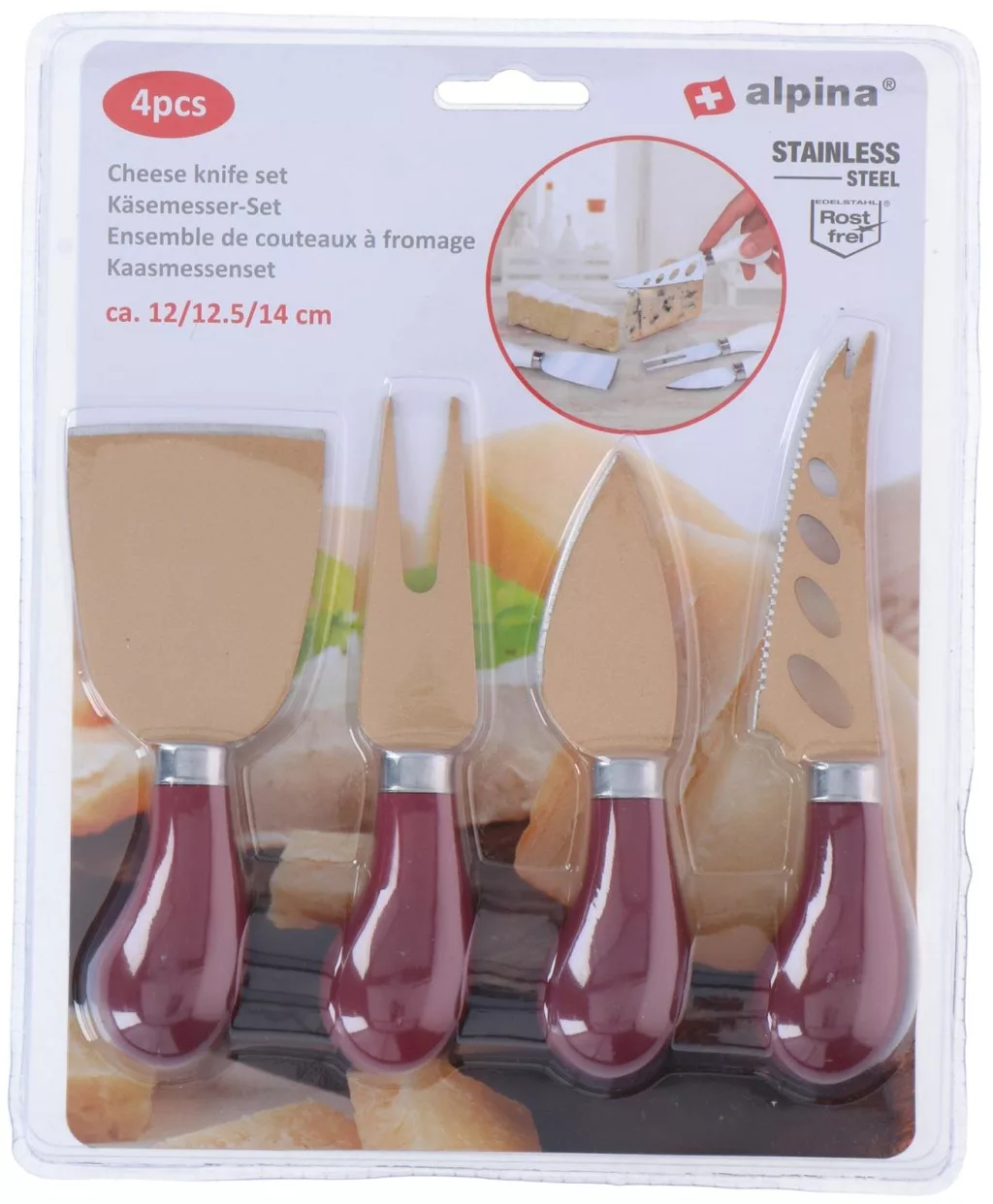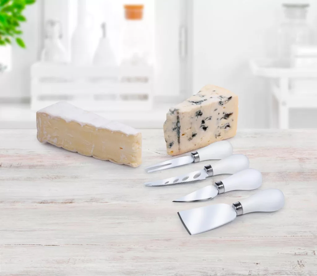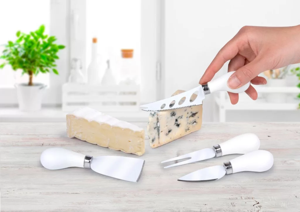 Sokoldalú sajtkéskészlet kemény és lágy sajtok tökéletes szeleteléséhez. Stílusos kiegészítője az asztalterítéknek.