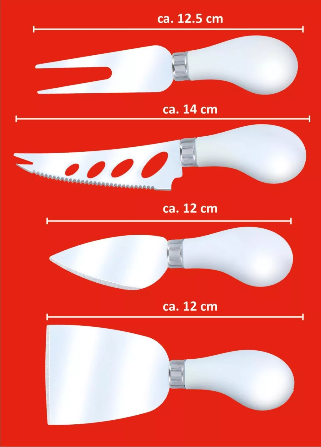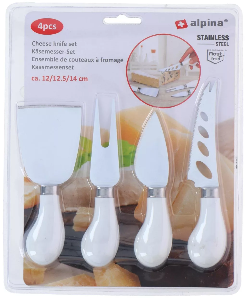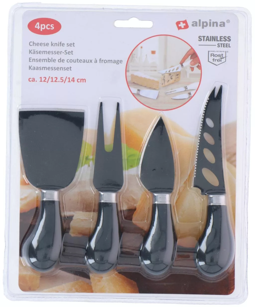 Sokoldalú sajtkéskészlet kemény és lágy sajtok tökéletes szeleteléséhez. Stílusos kiegészítője az asztalterítéknek.
