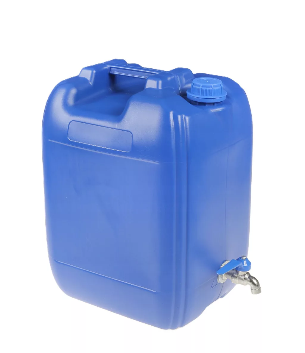 Víztartály/kannás edény fém csappal. Tökéletes lakókocsikban, kempingkocsikban, csónakokban, kiskertekben vagy kiskertekben való használatra. Ez a praktikus tartály egy praktikus fogantyúval rendelkezik a víz tárolására. Tartós, időjárásálló műanyagból (HDPE) készült.