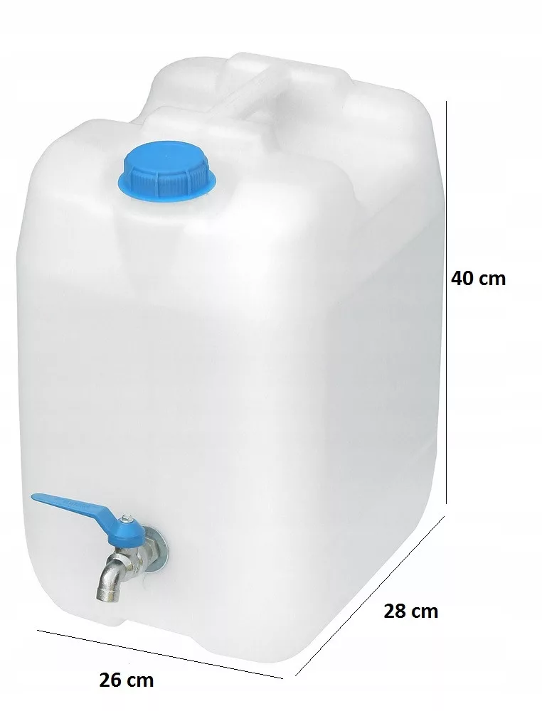 Műanyag vizes kanna, fém csappal - 20 l - fehér