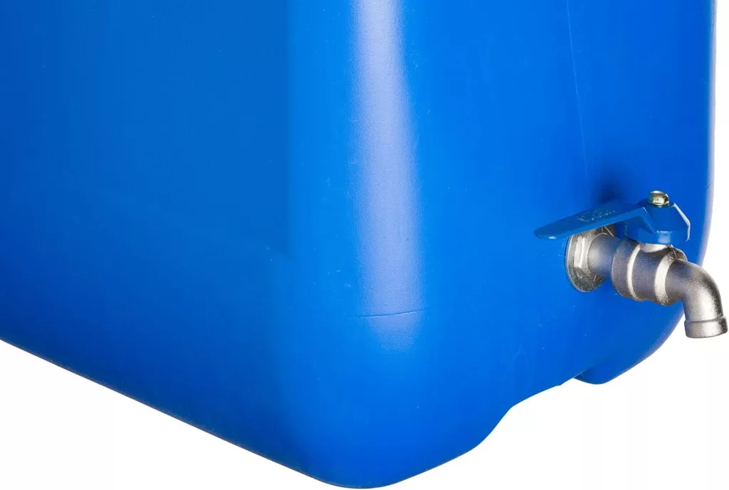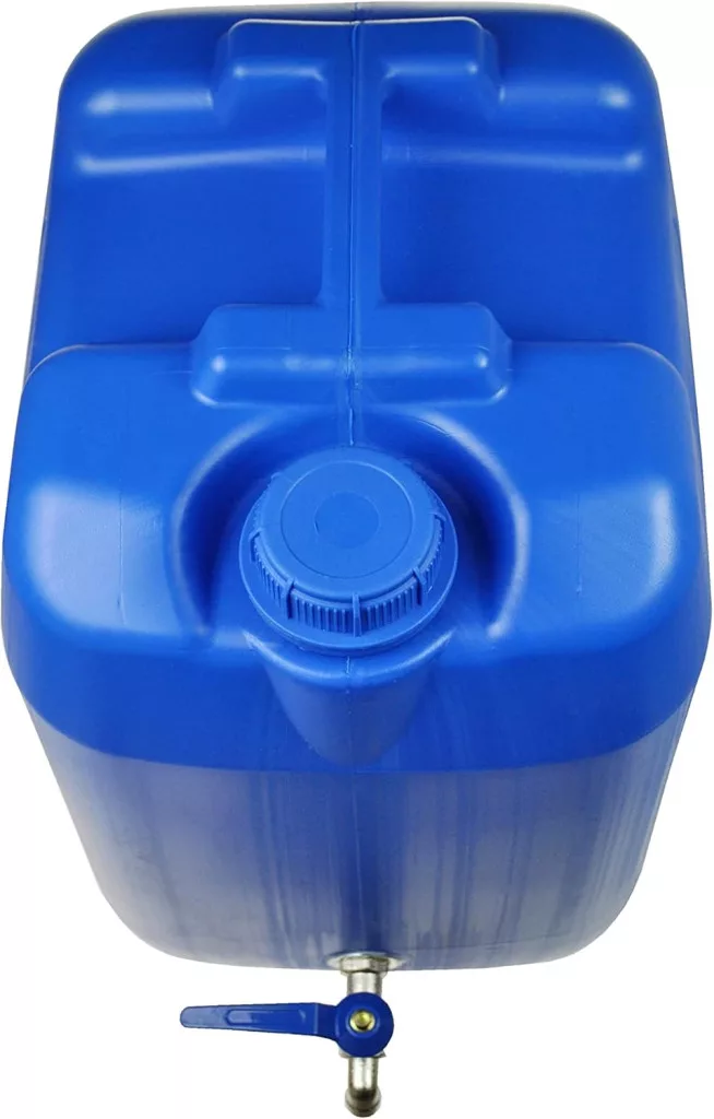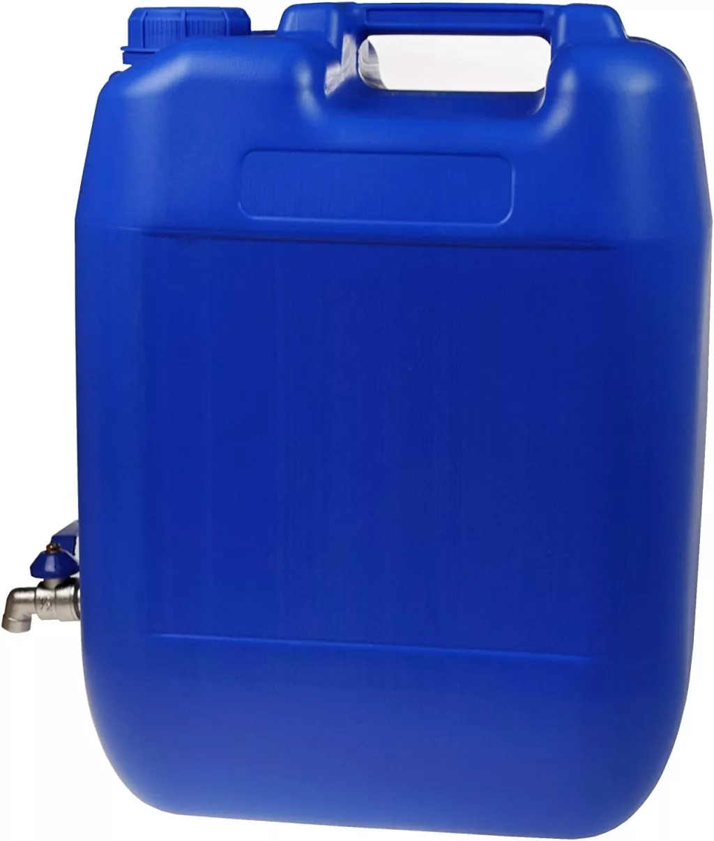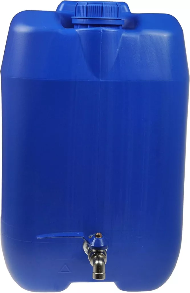 Víztartály/kannás edény fém csappal. Tökéletes lakókocsikban, kempingkocsikban, csónakokban, kiskertekben vagy kiskertekben való használatra. Ez a praktikus tartály egy praktikus fogantyúval rendelkezik a víz tárolására. Tartós, időjárásálló műanyagból (HDPE) készült.
