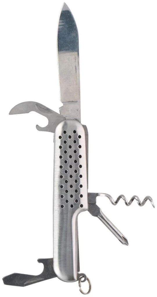 Sokoldalú 5 az 1-ben zsebkés kültéri használatra, túrázáshoz és horgászathoz.